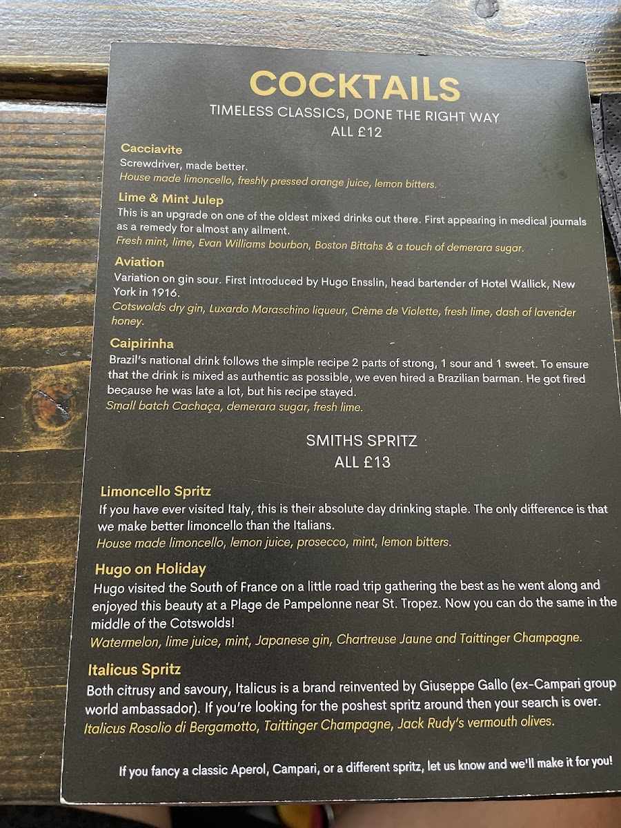 Smiths in Cheltenham offers a delightful blend of traditional British cuisine and modern culinary twists, making it a must-visit for both locals and tourists. The menu is a true representation of quality, offering a variety of options that cater to all tastes, from classic comfort food to innovative dishes with a contemporary flair.